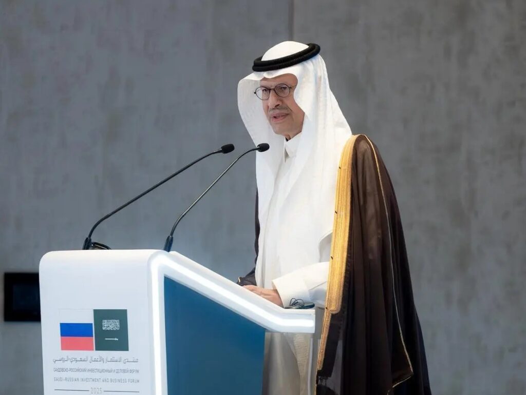 Minister of Energy Prince Abdulaziz bin Salman bin Abdulaziz, who is also Co-Chair of the Saudi-Russian Joint Commission, and Deputy Prime Minister of the Russian Federation and Co-Chair of the commission Alexander Novak inaugurated today in Riyadh the Saudi-Russian Investment and Business Forum. The forum, organized by the Saudi ministries of energy and investment, was held in the presence of Minister of Foreign Affairs Prince Faisal bin Farhan bin Abdullah and brought together senior officials, experts, and investors from both countries with the aim of strengthening economic cooperation between the Kingdom of Saudi Arabia and the Russian Federation.